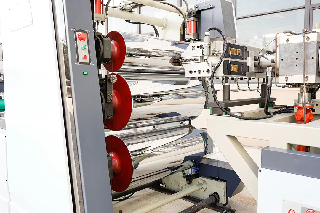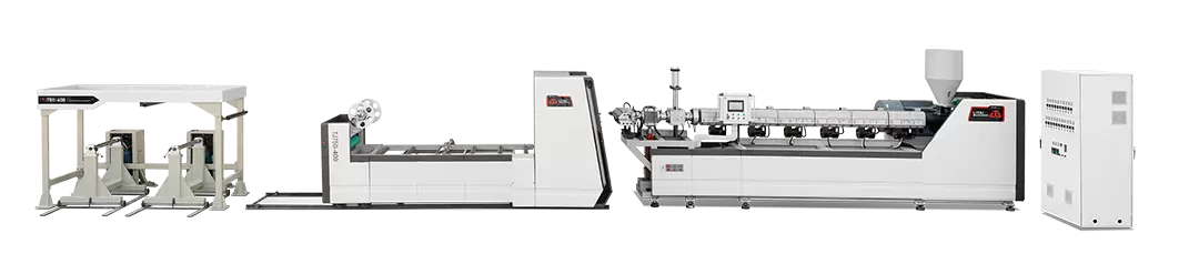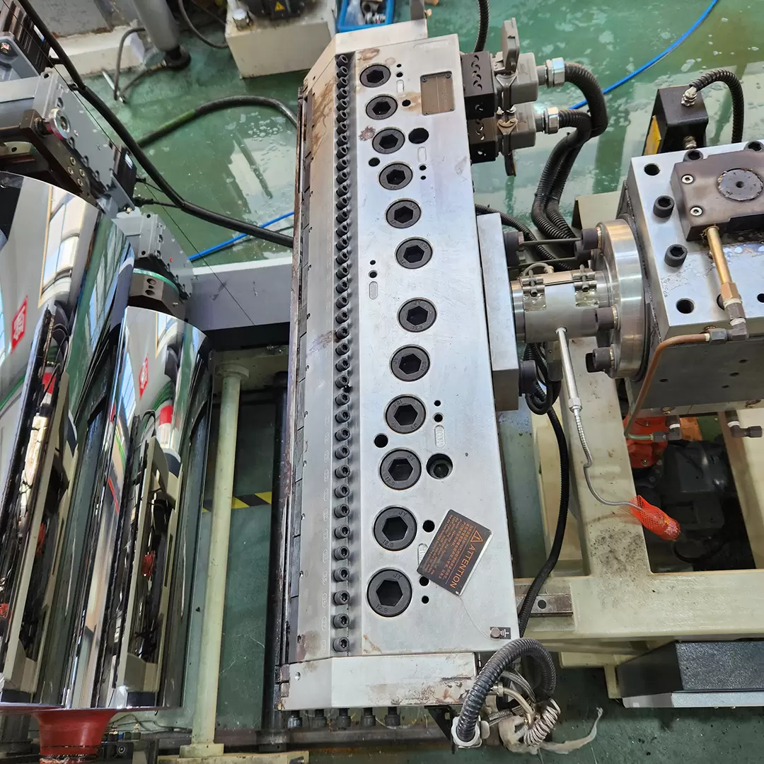 تتكون آلة بثق الصفائح من أجزاء البثق، والتقويم، والسحب، واللف، وغيرها. خضعت الأجزاء الرئيسية للتآكل لمعالجة خاصة عالية الجودة، وهي مقاومة للتآكل ودرجات الحرارة العالية. تضمن قوى المقاومة المنخفضة داخل قناة بثق القالب سماكة موحدة للصفائح، وتضمن الأخاديد الحلزونية داخل الأسطوانات الثلاث تبريدًا فعالًا، كما يسهل استبدال الوحدة الهيدروليكية وتركيب مغير الشاشة دون الحاجة إلى إيقاف الآلة.