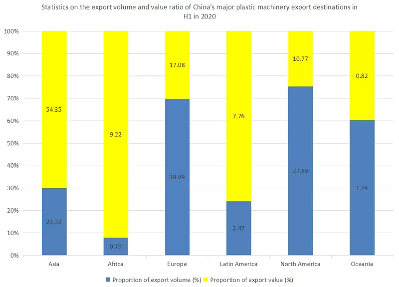 أشار خبراء مختصون إلى أن صادرات منتجات الآلات البلاستيكية في بلدي ستهيمن عليها آلات قولبة الحقن مستقبلاً. وبناءً على تحليل كمية الصادرات، يُقدر أن نسبة أنواع الآلات المختلفة هي: 60.4% لآلات قولبة الحقن، و6.8% لآلات البثق، و11.7% لآلات النفخ، و21.1% لآلات البلاستيك الأخرى. ومن حيث عائدات النقد الأجنبي من صادرات منتجات الآلات البلاستيكية، شكلت آلات قولبة الحقن 74.1%، وآلات البثق 8.1%، وآلات النفخ 8%، ومنتجات الآلات البلاستيكية الأخرى 9.8%.