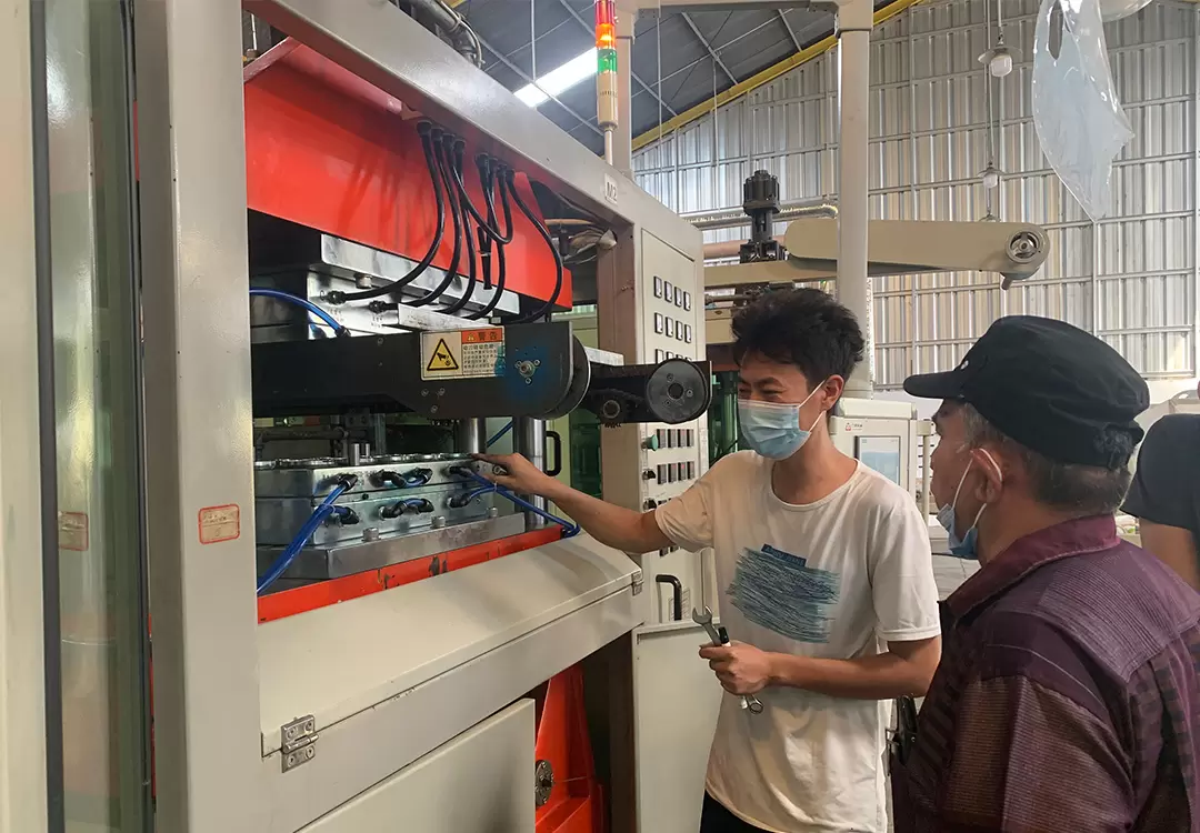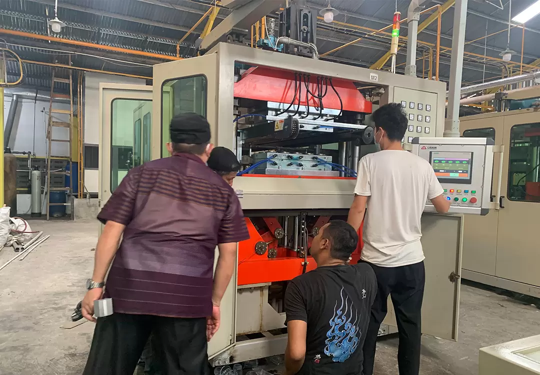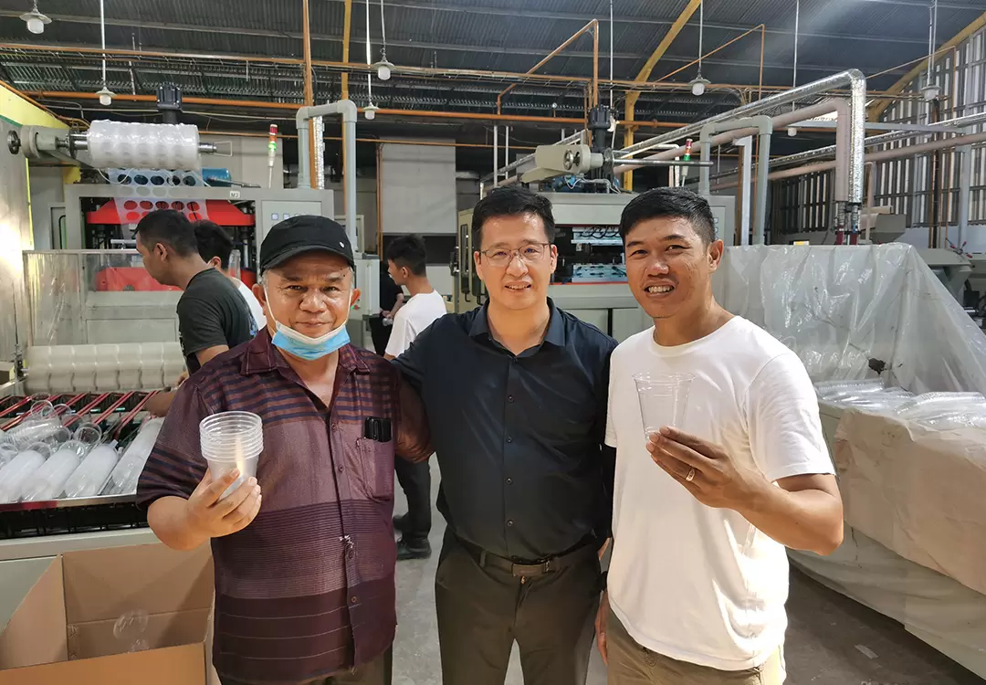 في أوائل أغسطس 2023، سافر فريقنا إلى إندونيسيا لزيارة عملاء قدامى. هذه المرة، زار فريقنا مصنع العميل واصطحب معه مهندس تشغيل المعدات. الهدف الأول هو إيجاد وكلاء لآلات التشكيل الحراري البلاستيكية، والثاني هو خدمة العملاء القدامى في إندونيسيا. ضبط وصيانة معدات العملاء، وحل الأعطال والمشاكل الشائعة في الإنتاج اليومي. نرحب بفريقنا لزيارة عملائنا.مصنع. اشترى هذا العميل آلتين لتصنيع الأكواب البلاستيكية TQC-650B وآلتين لبثق ألواح البلاستيك TJ-750D PP PS من شركتنا في عام 2021!