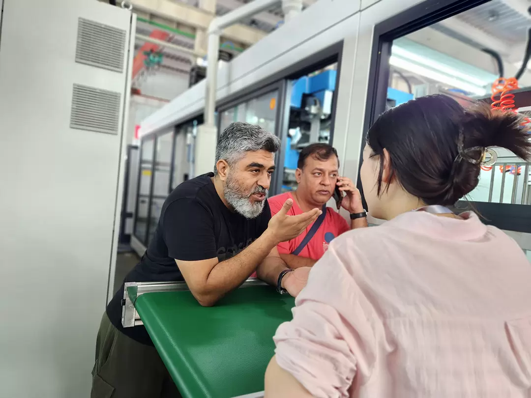 في 21 أغسطس 2023، جاء عميلنا الهندي إلى المصنع للدراسة. ولأن العميل كان قلقًا من صعوبة التقدم بطلب للحصول على تأشيرة مهندس التشغيل من الصين إلى الهند، فقد بادر العميل بالحضور إلى مصنعنا للتعرف على المعدات اللازمة للإنتاج والشحن في أسرع وقت ممكن. كما نشكر العميل على دعمنا. بفضل تفهمه ودعمه، اشترى العميل آلة التشكيل الحراري البلاستيكية الأوتوماتيكية ثلاثية المحطات TTF-700A و11 مجموعة من القوالب من شركتنا، والتي تُستخدم لإنتاج علب طعام خارجية مكونة من 8 حجرات وعلب طعام خارجية مكونة من 3 حجرات مصنوعة من مواد PP، وعلب بلاستيكية صدفية من مادة PET بأعماق مختلفة. تُستخدم بشكل رئيسي في تغليف سلطة الفاكهة.